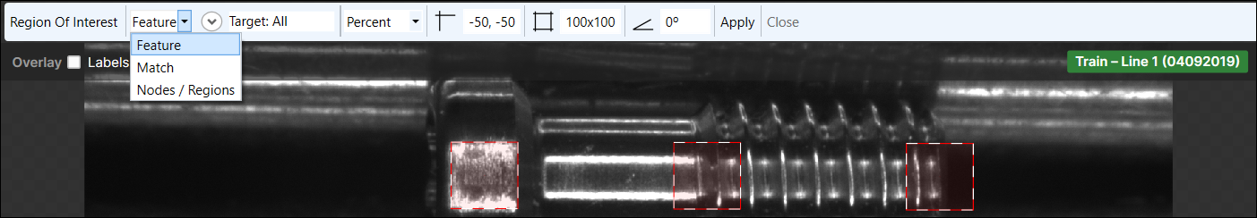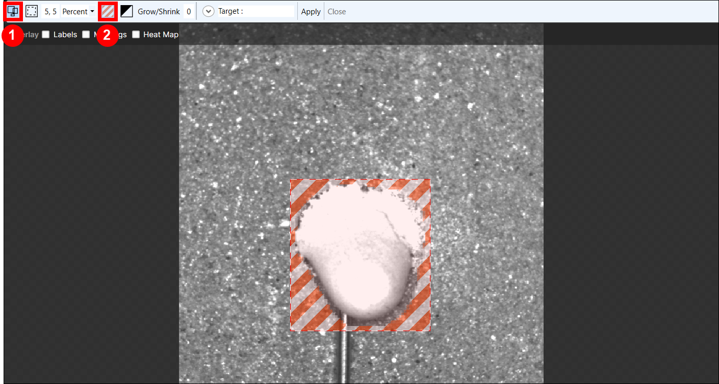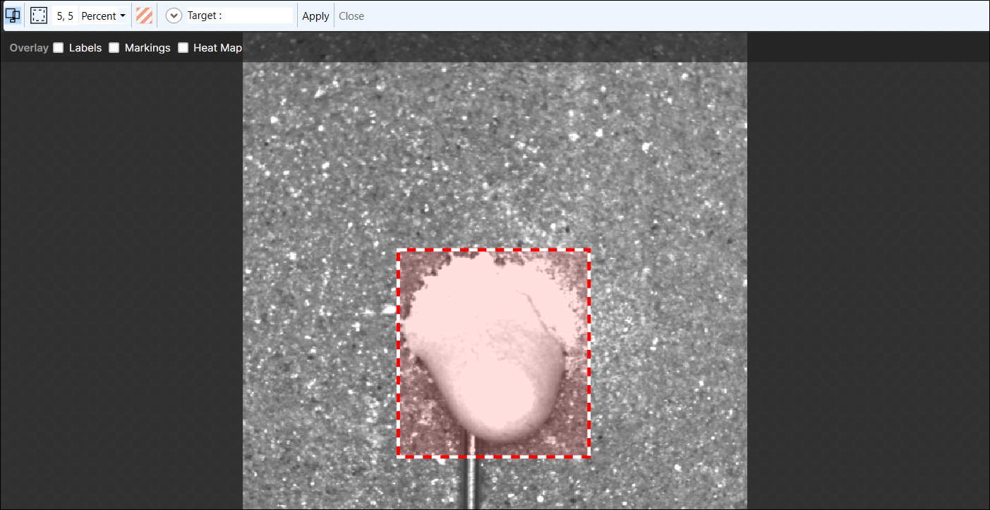 The Target field will display the filter being applied to generate views. You can then adjust the ROI to fit the area you want to inspect.