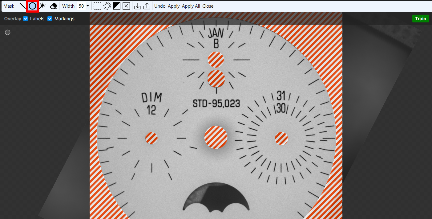 - Press the Brain icon to train the system. Then review the results and manually label the images where the features were not found correctly.