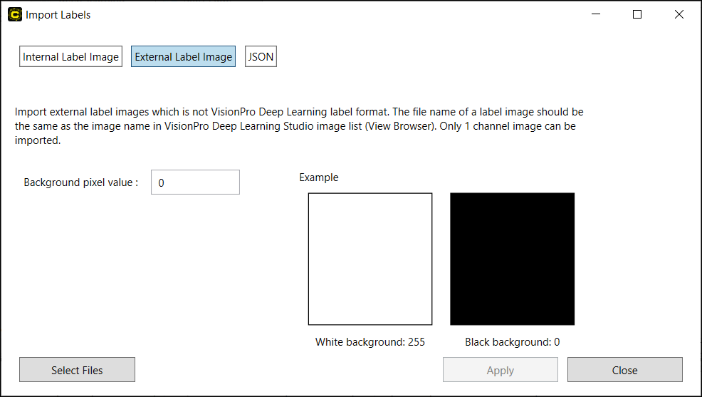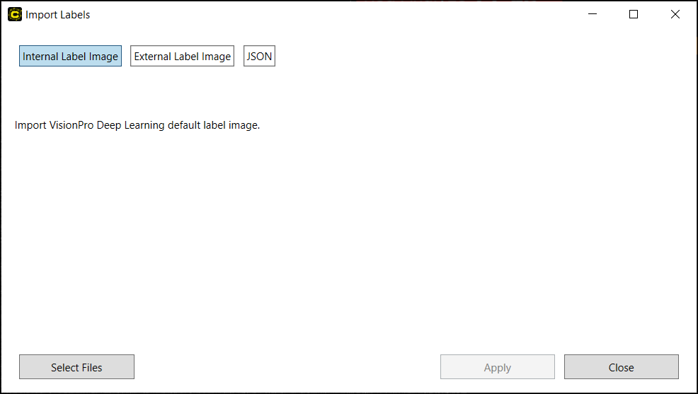 Import Internal Labels (label files in VisionPro Deep Learning internal label file format) |