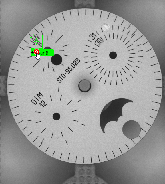 When Oriented and/or Scaled are enabled, you must consistently label each feature with its orientation and/or size, in addition to the feature's position and identity. During runtime, each found feature's orientation and scale will be determined and reported, and you can adjust the Angle Range and Size Range Processing parameters, if necessary, to account for variations.