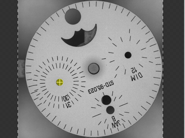 Green Classify in Focused mode, Red Analyze in Focused mode, Blue Locate and Blue Read tools analyze images based on the Feature Size that you specify. The feature size, which is based in pixels, functions as a hint to the tool about the expected size of "meaningful" or "distinctive" features in the input images. The best method for selecting a feature size is to examine the input images as if you were a human inspector. Note the features in the image that you would use to characterize the image as good or bad, to identify a defect or problem, or to determine where something was and what it was.