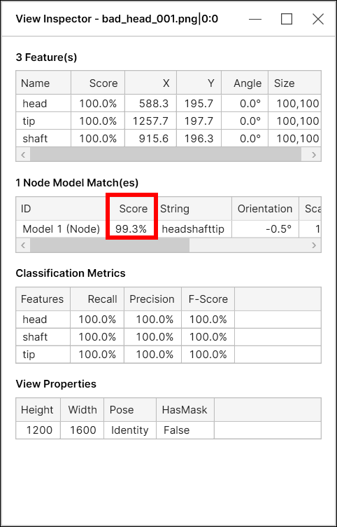 For Blue Locate tool, a node model score (model match score) is a combination of two things: