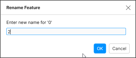 You can rename features by clicking the name, and then pressing the pencil icon to launch the Rename Feature dialog.