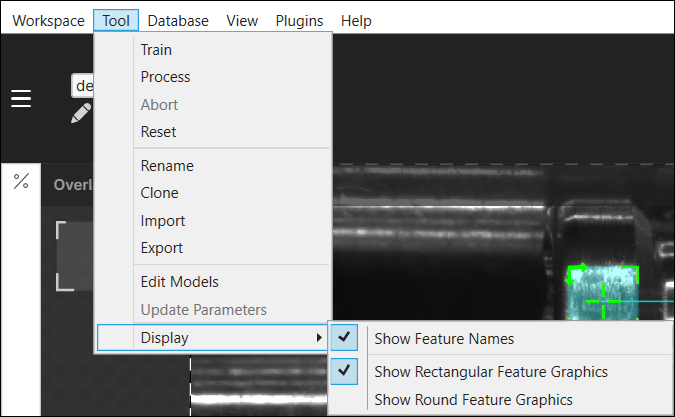 To change the display of the feature label graphics, go to the Tool menu and open the Display sub-menu.