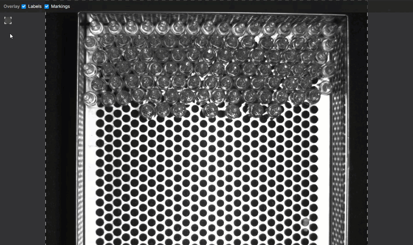 Once you have applied labels to the features in your images, and you have trained the tool, the tool will apply Markings to the areas of the image that it thinks match the feature. The difference between labels and markings is their appearance.