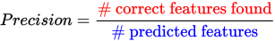 How precisely the tool is to find a feature that has been labeled. Precision is the neural network’s ability to correctly place a feature. It is denoted as the number of correctly marked features over the total number of found features. Hopefully high precision means that all features found exist in the image. But high precision does not take into account all of the features that exist that were not found, so there still can be Type II errors, where we have many more features that have gone undetected. See Basic Concepts: False Positives, False Negatives for the details. | |