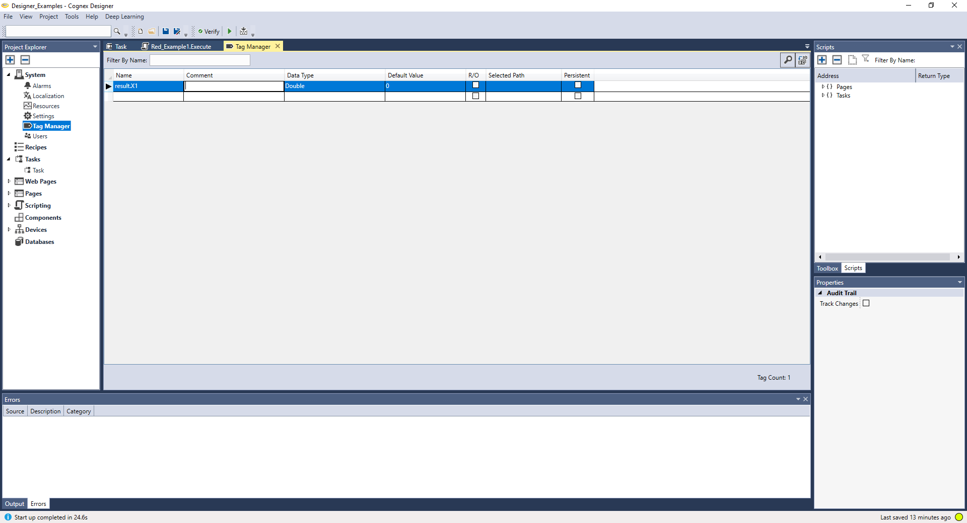 To run the example codes below that use 'tag,' go to Project Explorer - Tag Manager to add the tags first.