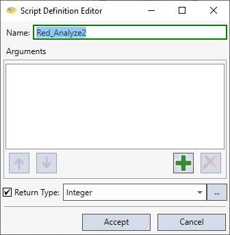 Here is another sample script for Red Analyze. If your script code doesn't use any tag, right-click the script block, click Reconfigure Script I/O. to run the example below. It will open the Script Definition Editor window and there set Return Type as String.
