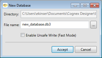 - In the New Database dialog, provide a name for your database and press the Accept button. Your database is created.