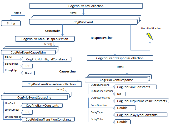 The API supports the CogPrio, the CogPrioEvent, and the CogPrioEventCollection classes for creating precision I/O events and configuring them to interact with a precision I/O event system.