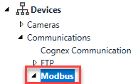 In the Project Explorer, search for the Devices > Communications > Modbus node.
