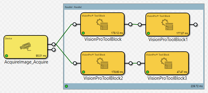 Sometimes you want a few groups of blocks to execute in parallel. In this case, you will need to place each logical sequence of blocks within a Group Region or a Sub Task block to prevent them all from being executed at the same time, before their pins can be updated.