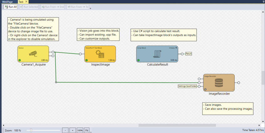 Predefined projects contain a number of preconfigured components, for example a Camera Acquire block.