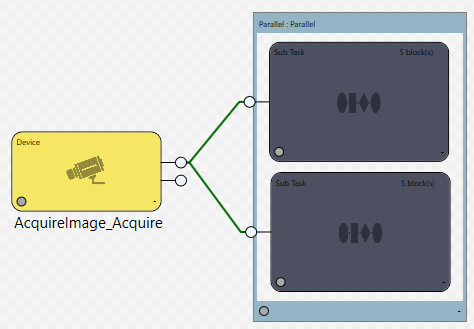 Sometimes you want a few groups of blocks to execute in parallel. In this case, you will need to place each logical sequence of blocks within a Group Region or a Sub Task block to prevent them all from being executed at the same time, before their pins can be updated.