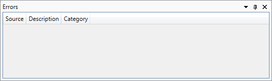 The Errors window displays any script compilation errors present in the project. To display the Errors window, navigate to View > Errors, and the Errors window will be displayed below the Project Explorer.
