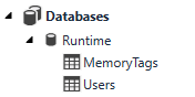 Databases: Contains all of the databases attached to the project, as well as their associated tables and queries. A new database can be created through the right-click menu.