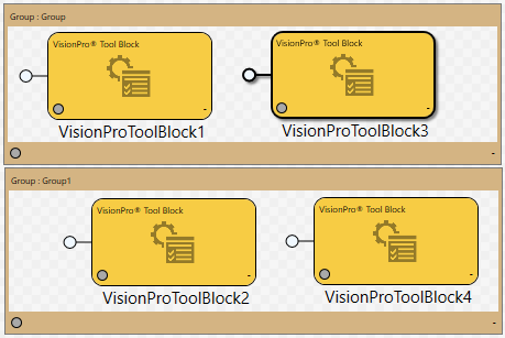 However, by placing two Group regions around the blocks, as shown below, their execution will now be: ToolBlock_1 > ToolBlock_3 > ToolBlock_2 > ToolBlock_4. The order of execution is changed because "Group" will execute the blocks contained within it before the blocks in "Group1" are executed.