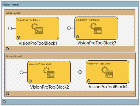 By placing a Processing Parallel Regions around the two Group regions, the Tool Blocks in "Group" will execute sequentially on one thread, and the Tool Blocks in "Group1" will execute sequentially on another thread.