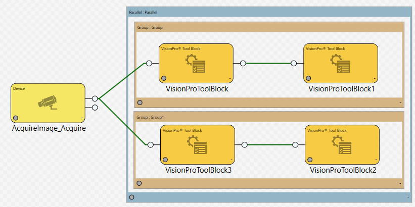 Sometimes you want a few groups of blocks to execute in parallel. In this case, you will need to place each logical sequence of blocks within a Group Region or a Sub Task block to prevent them all from being executed at the same time, before their pins can be updated.