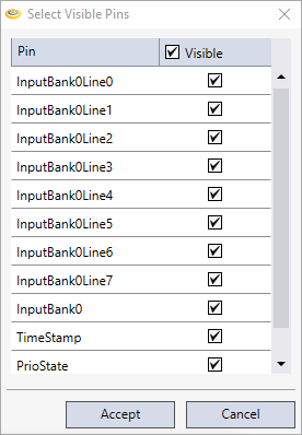 | Visible Pins | Press the Edit button (or double-click the Block) to launch the Select Visible Pins dialog, where the number of output lines can be configured. By default, all of the output pins are visible. |
