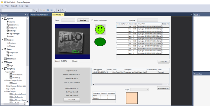 Cognex Designer allows you to very quickly test your project without having to compile or exit Designer.