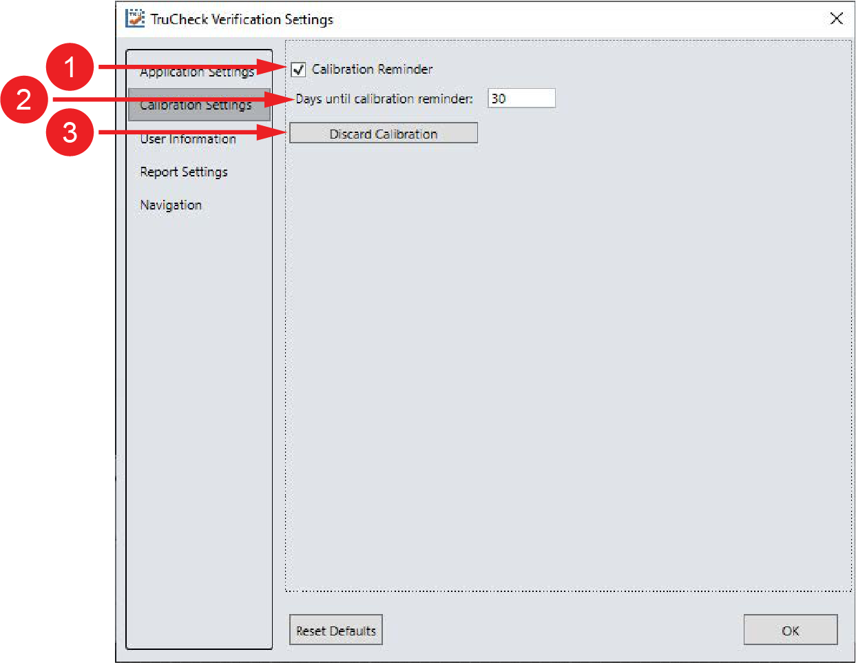 | 1 | Calibration Reminder | Check the Calibration Reminder checkbox to enable a reminder for calibration. |