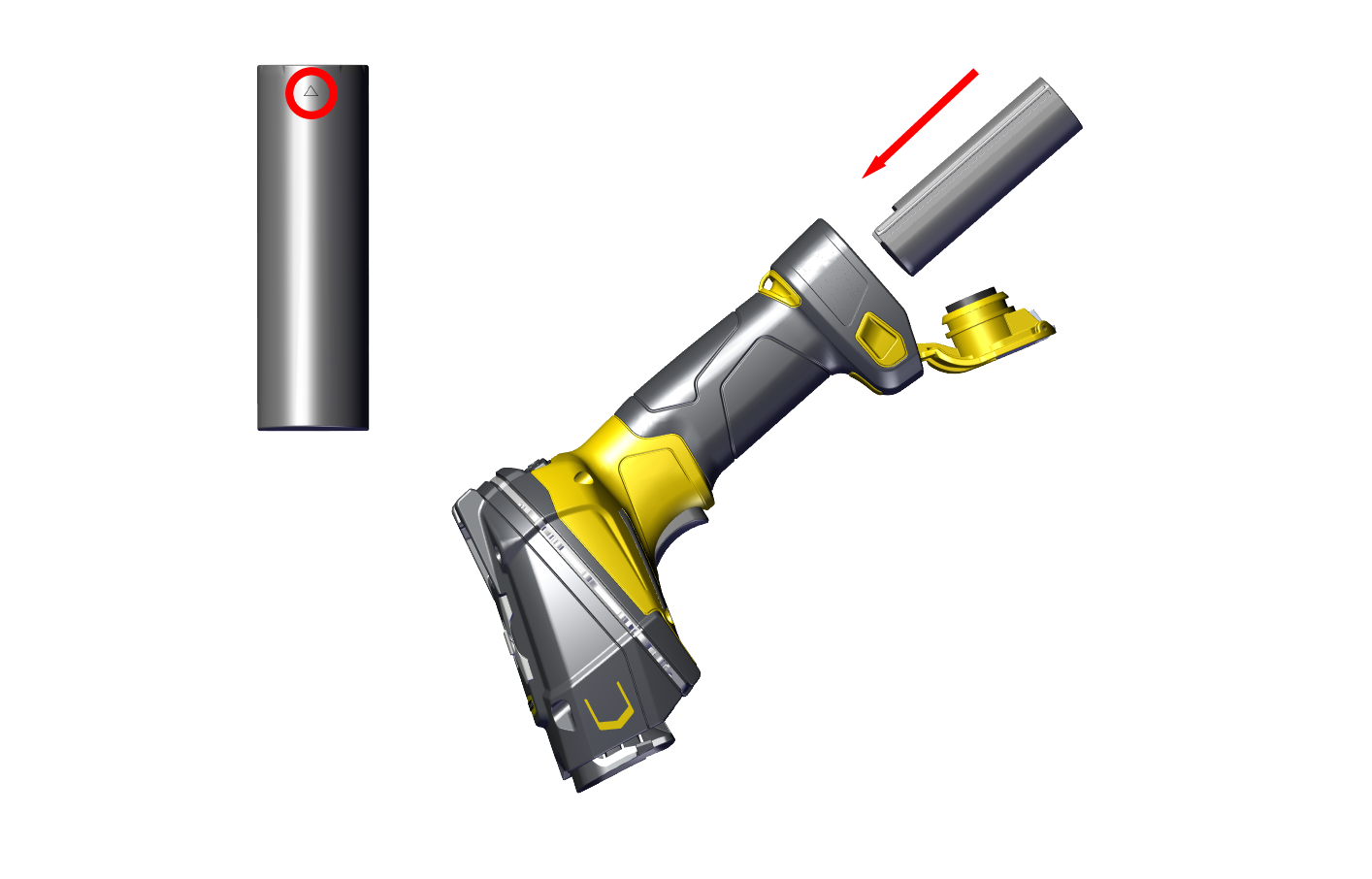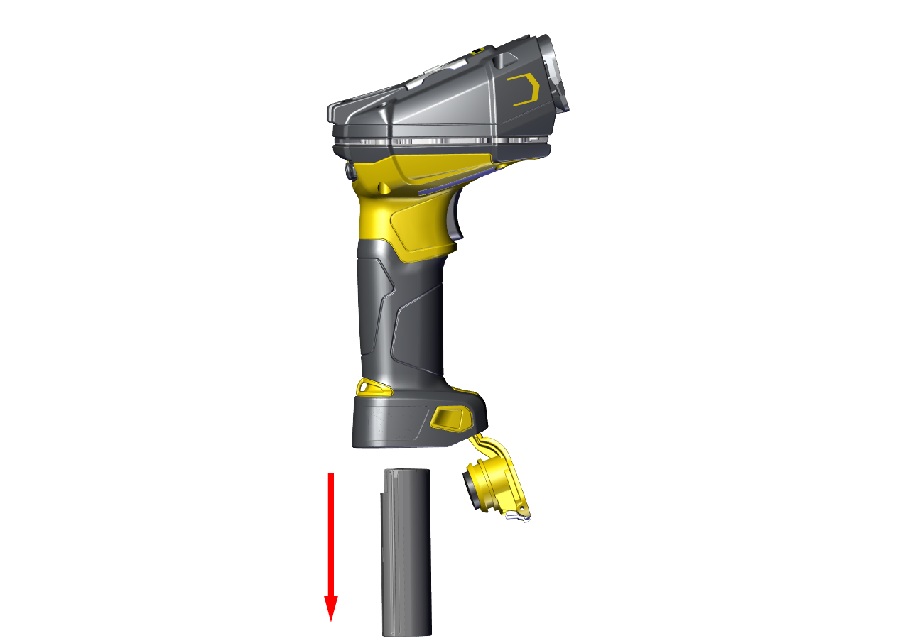 2. Hold the reader in an upright position and the battery slides out of the handle.