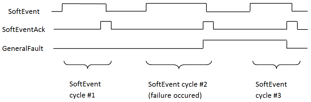 When a communication-related fault occurs, the “GeneralFault” bit changes from 0 to 1. The only fault conditions supported are SoftEvent operations. If a SoftEvent operation fails, the fault bit will be set. The fault bit will remain set until the next successful SoftEvent operation, or until TriggerEnable is set to 0 and then back to 1.