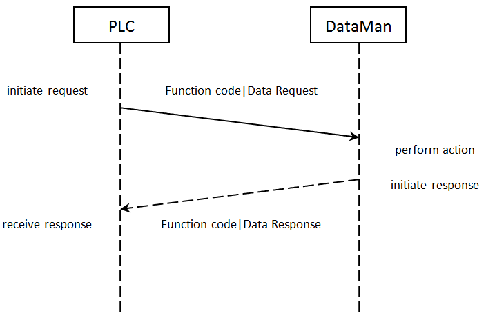 Modbus TCP is a request/response based protocol. All communications are originated from the PLC. The reader acts as server.