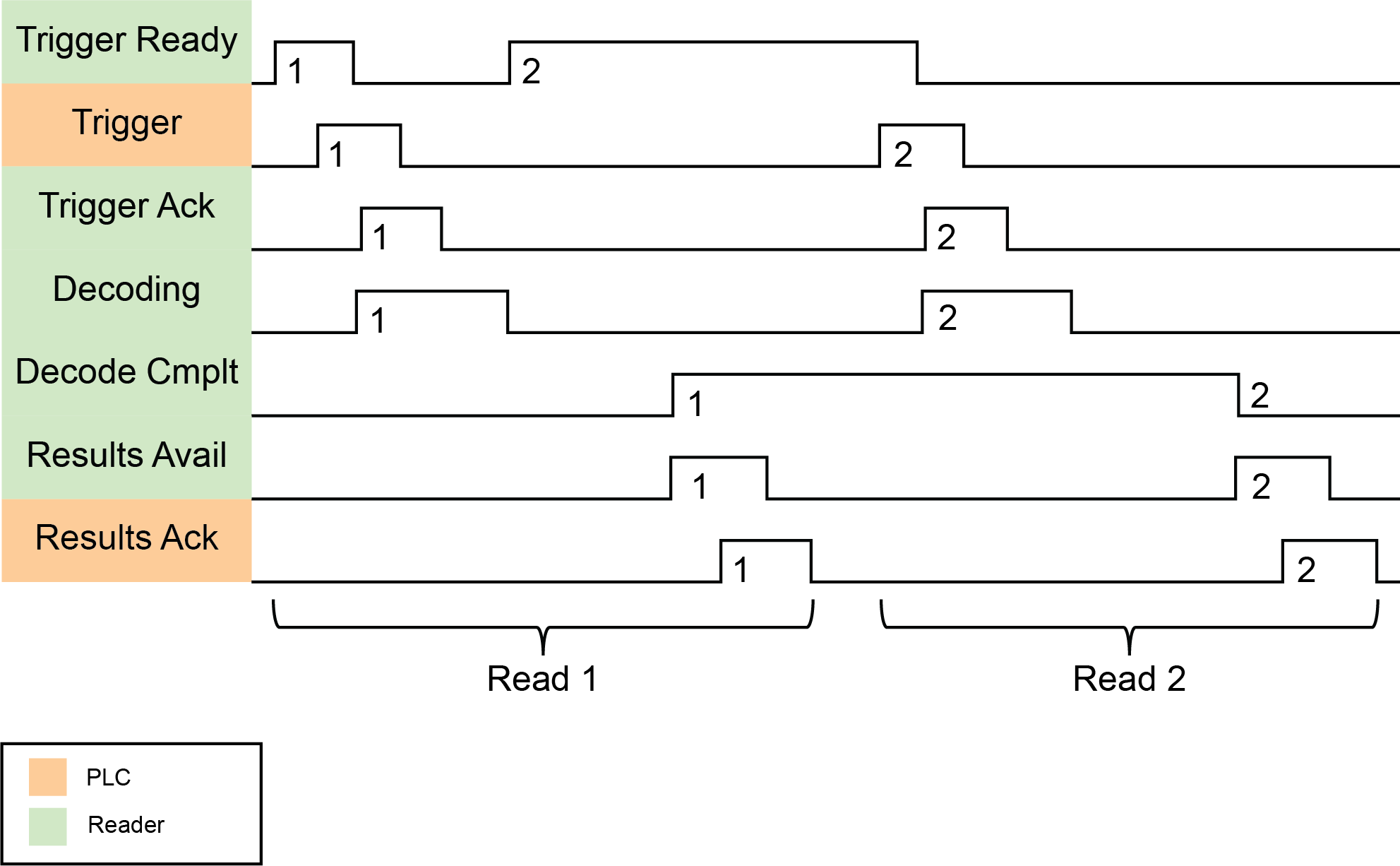 While the TriggerReady bit is True, each time the reader detects the Trigger bit change from 0 to 1, it initiates a read. Make sure that the PLC holds the bit in the new state until that same state value is seen in the TriggerAck bit. This is a necessary handshake to guarantee that the reader detects the change.
