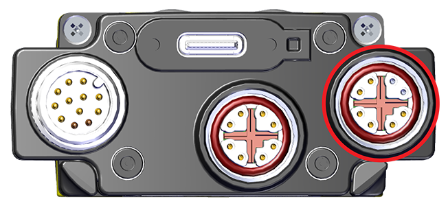 The DataMan 280 EtherCAT reader provides two 100 MBit EtherCAT ports in a single physical connector. One of the ports acts as input, and the other one as output: