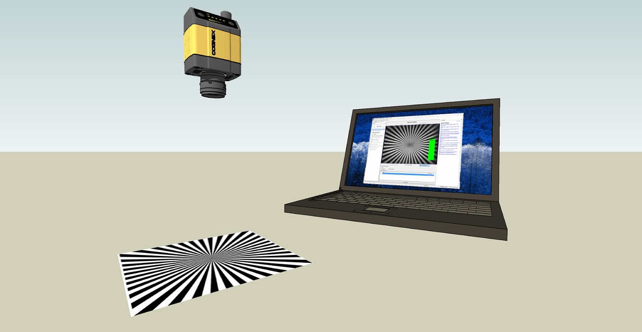 3. Use the DataMan Focus Target template, available through the Windows Start menu or the DataMan Setup Tool Help menu, to align the edge of the reader body to the line marked with the target distance used in your application.