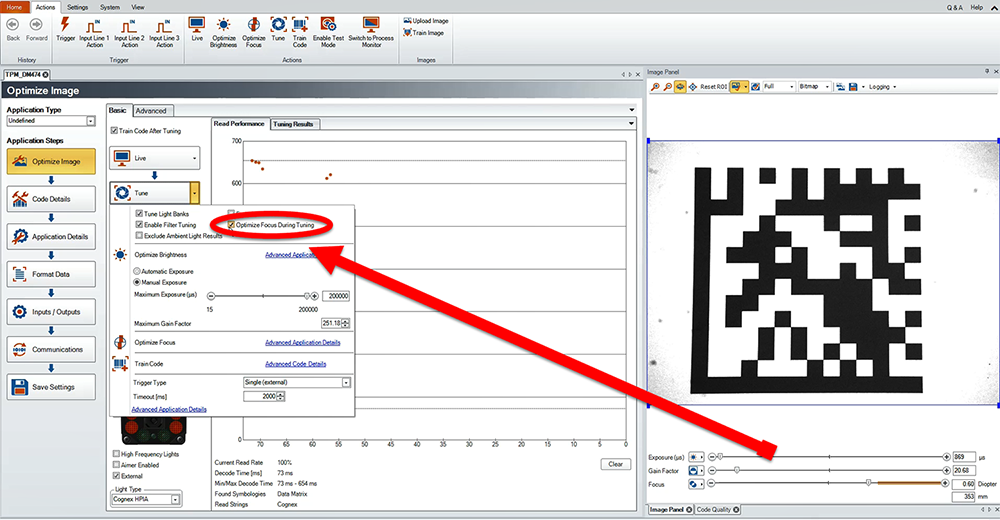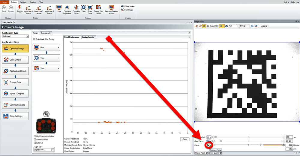 You can find this button in the lower left section of the image panel, or you can also optimize focus during tuning by checking the box in the tune dropdown.