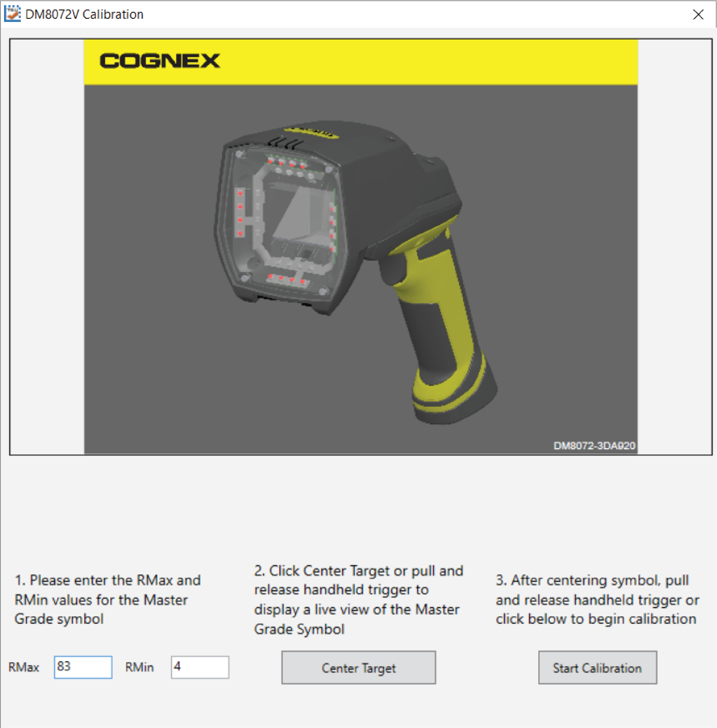 Before starting to use the DataMan 8072 Verifier verifier for verifying barcodes, the device needs to be calibrated. Perform the following steps to calibrate the unit.