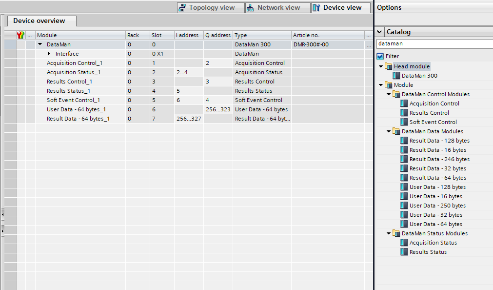 The HW Config tool automatically maps the DataMan I/O modules into the memory space.