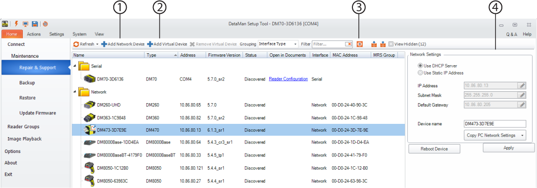| 1 | Add Network Device | Click Add Network Device for the dialog window to pop up. You can provide here the IP address of the device you want to add. |