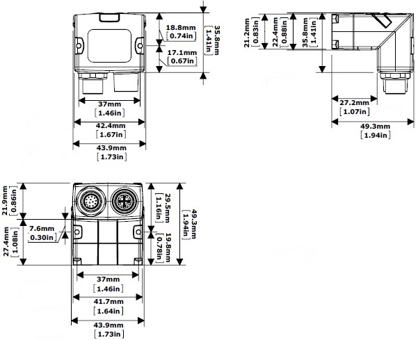 DataMan 260 dimensions in the angled configuration: