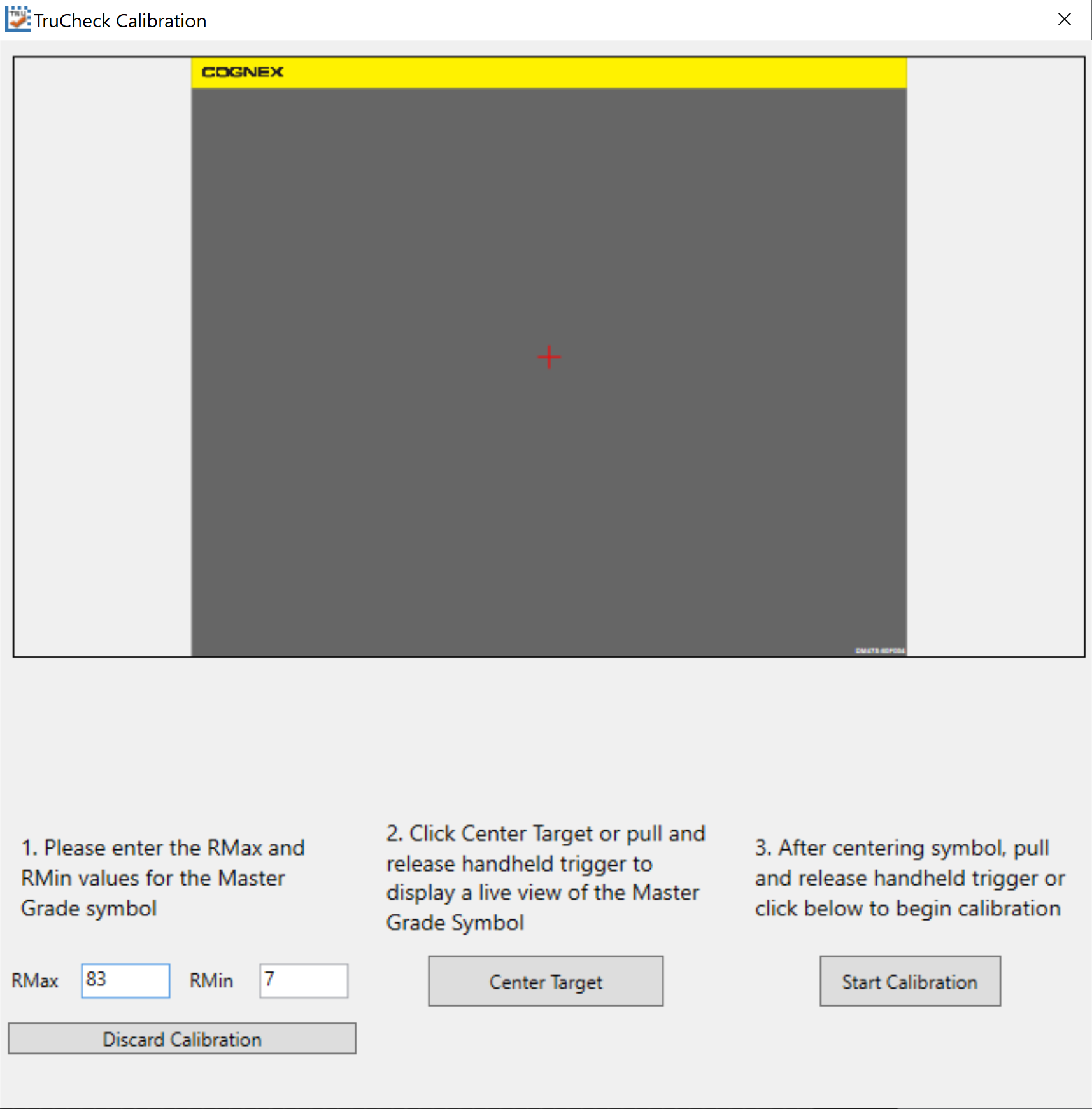 - A live image appears in the Calibration screen. Center the verifier over the Master Symbol on the Data Matrix symbol of your traceable calibration card.