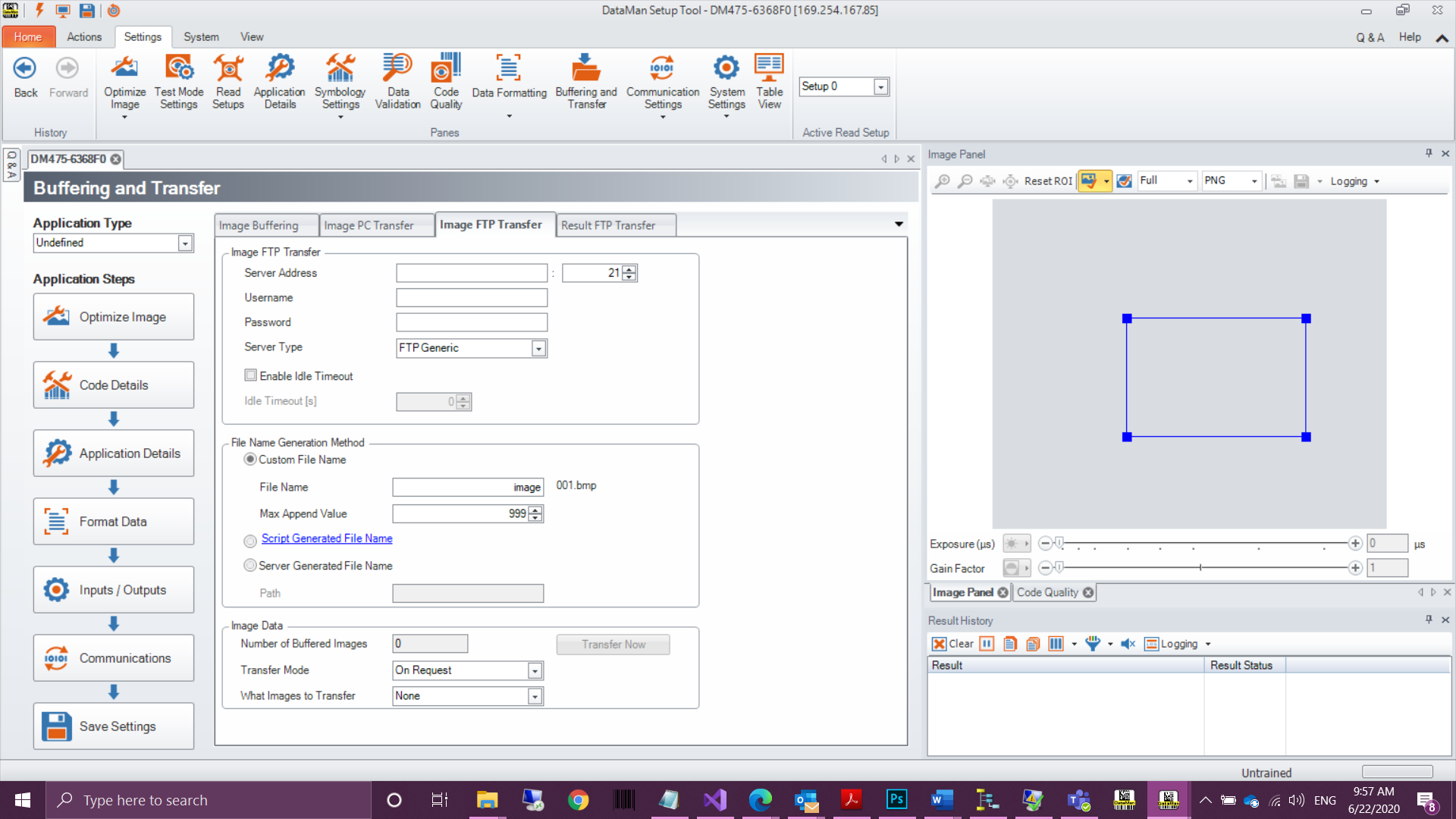 Click Image FTP Settings to open the Image Transfer tab in the Format Data application step in Setup Tool. Enter information in this window to set up image export via FTP transfer.