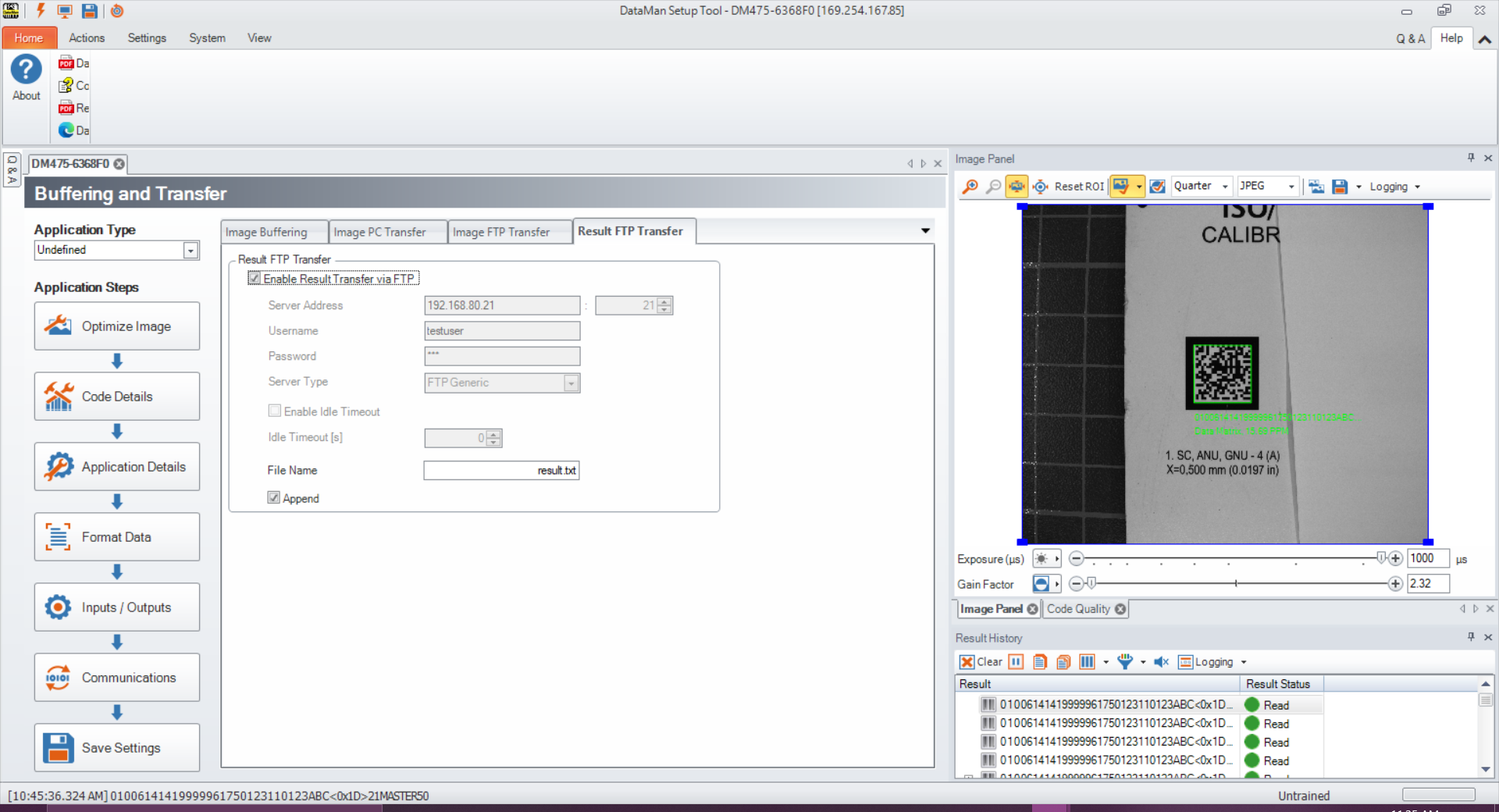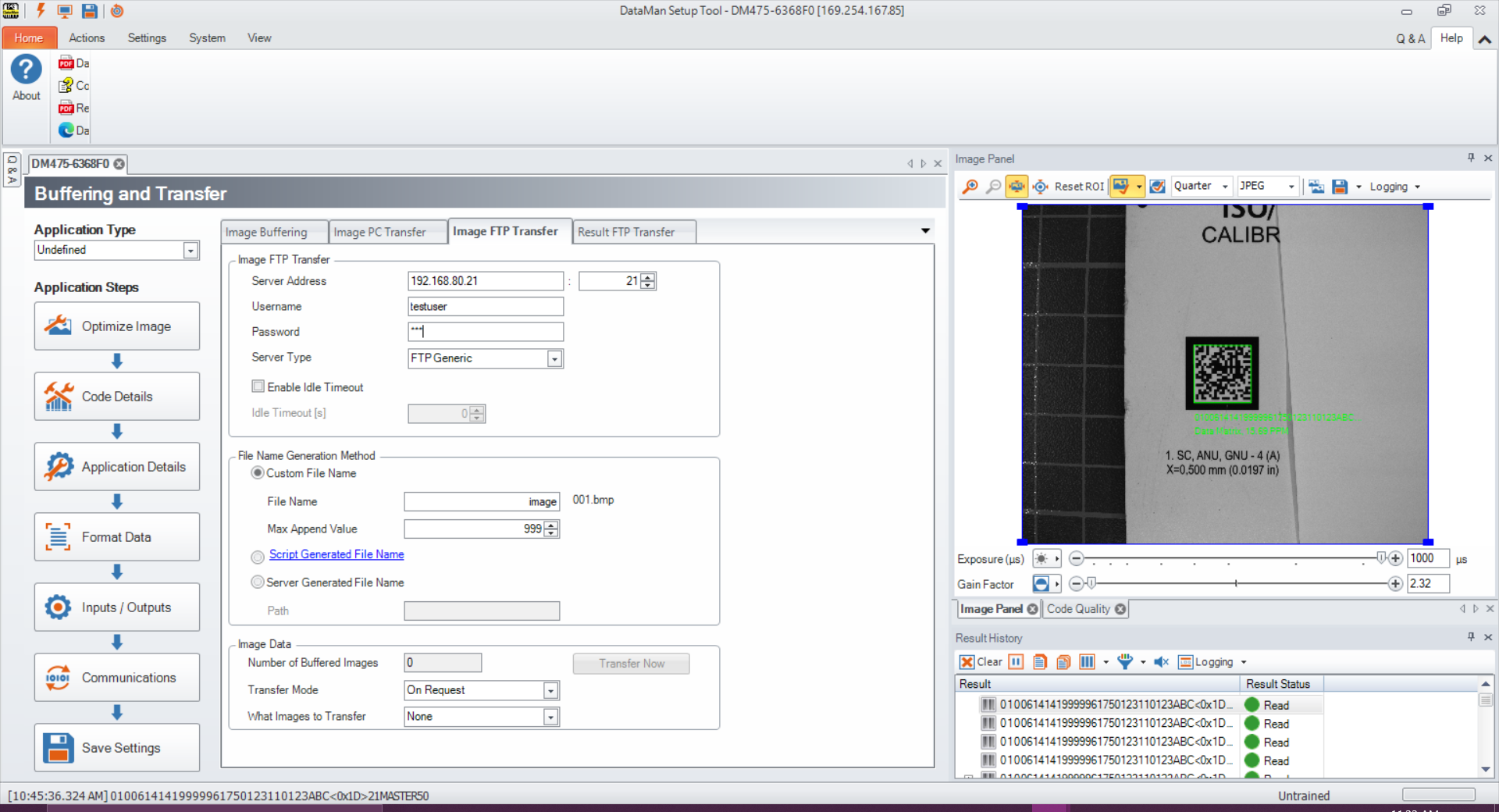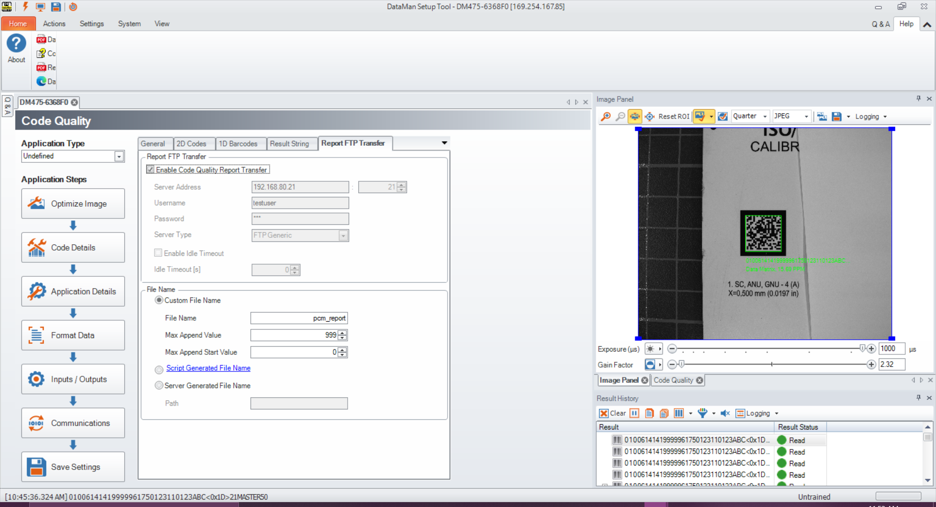 To configure the Dataman 475V to export verification results by FTP, change settings in Setup Tool to communicate with an external FTP server. Setup Tool can export information about: