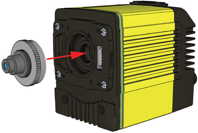 Insert an S-Mount adapter, thread the 10.3 mm Lens into the reader, and tighten the locking ring.