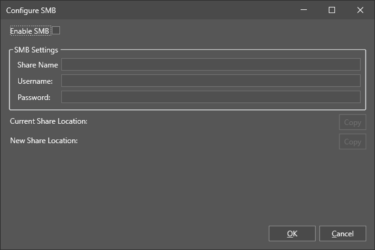 Press the Configure SMB button to launch the Configure SMB dialog.