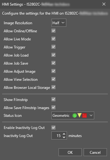 | Allow Browser Local Storage | Allows you to store the settings you made on the HMI window. For example, if you adjusted the zooming of the image, the HMI window stores this setting, and the next time you open the HMI window, the same scaling applies. |