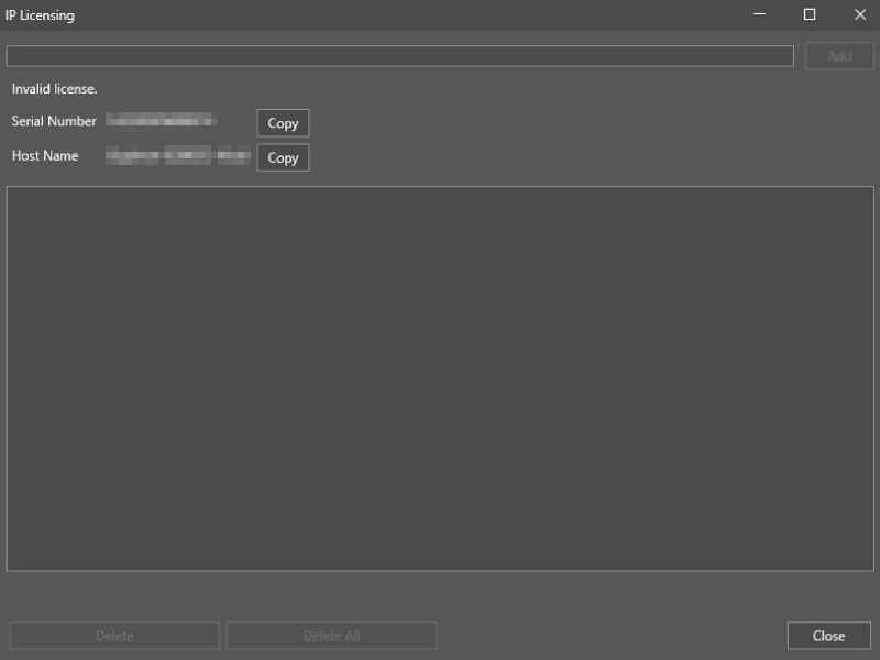 Paste the license generated with the IP License Generator into the empty field at the top of the dialog, and click Add.