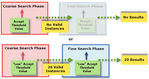 Specifies the lowest contrast of a valid instance. The contrast for a potential match must be greater than the value of the Contrast Threshold or that instance is not be considered (0 to 100; default = 0). FindPatMaxRedLine contrast is the "relative" measure of contrast change between features in the trained pattern versus match features in search image, in percentage. Therefore, if feature contrast is similar or high to pattern contrast, reported Contrast is ~100. If feature contrast is lower than pattern contrast, reported Contrast is <100. Note: Contrast for FindPatMaxRedLine is different than contrast for FindPatMaxPatterns, which is the "absolute" image contrast of the search ROI, in grey scale level.