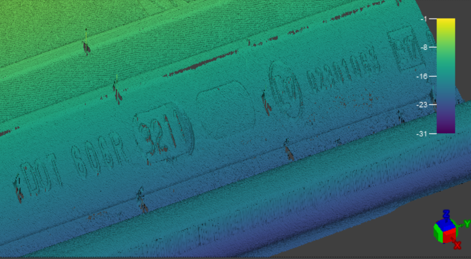 The Create2dHeightMapFromPointCloud function is particularly useful in OCR applications, as it is capable of clearly highlighting the small features of embossed or engraved characters.