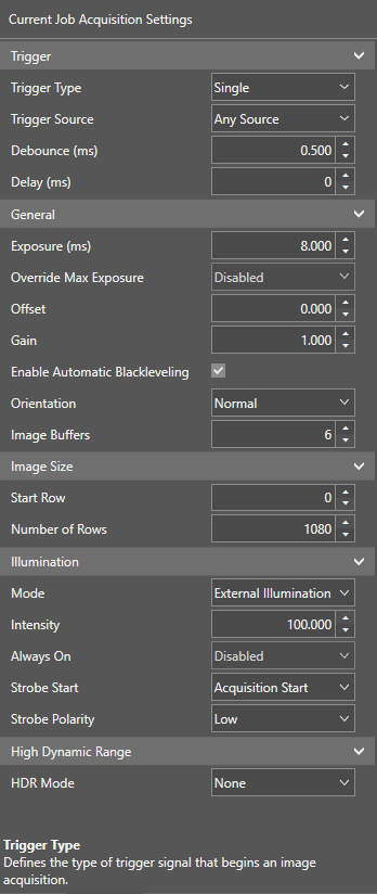 | Strobe Start Appears in External Illumination mode only. | Defines when the strobe fires. | [Camera Trigger, Acquisition Start] | |||||||||||||||||||||||||||||||||||||||||||||||||||||||||||||||||||||||||||||||||||||||||||||||||||||||||||||||||||||||||||||||||||||||||
