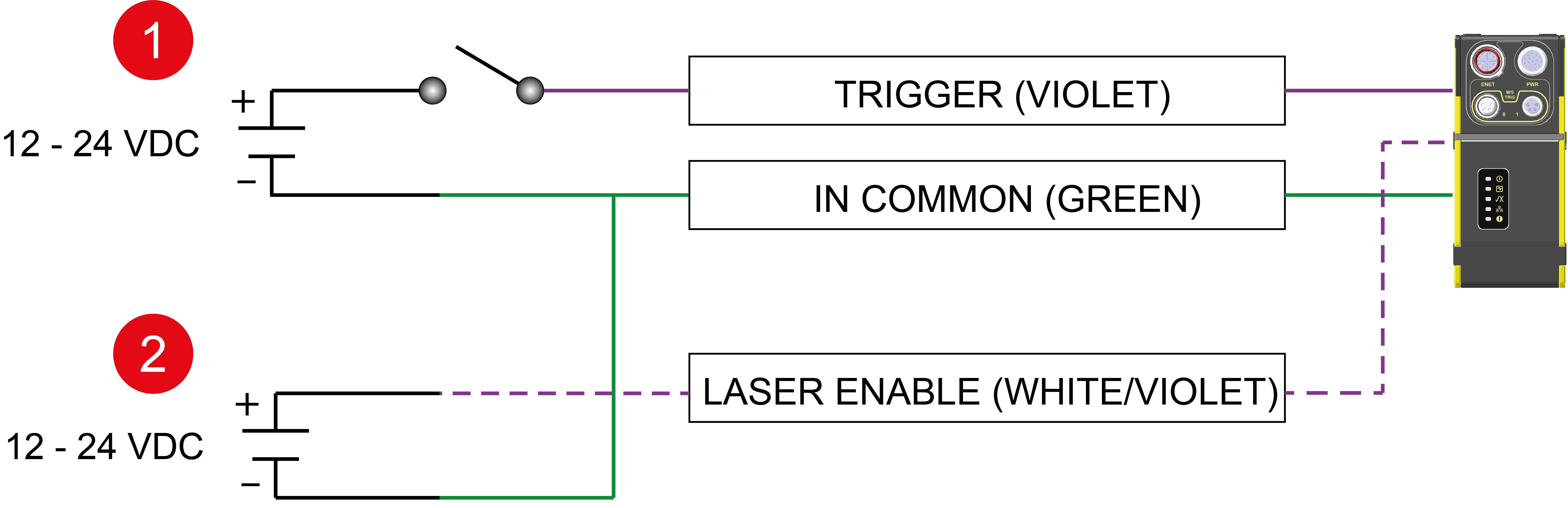 The following table presents the wiring schematic of the trigger and the laser in NPN configuration: