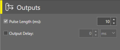 - To enable output delay, check the Output Delay checkbox and define the delay in ms.
