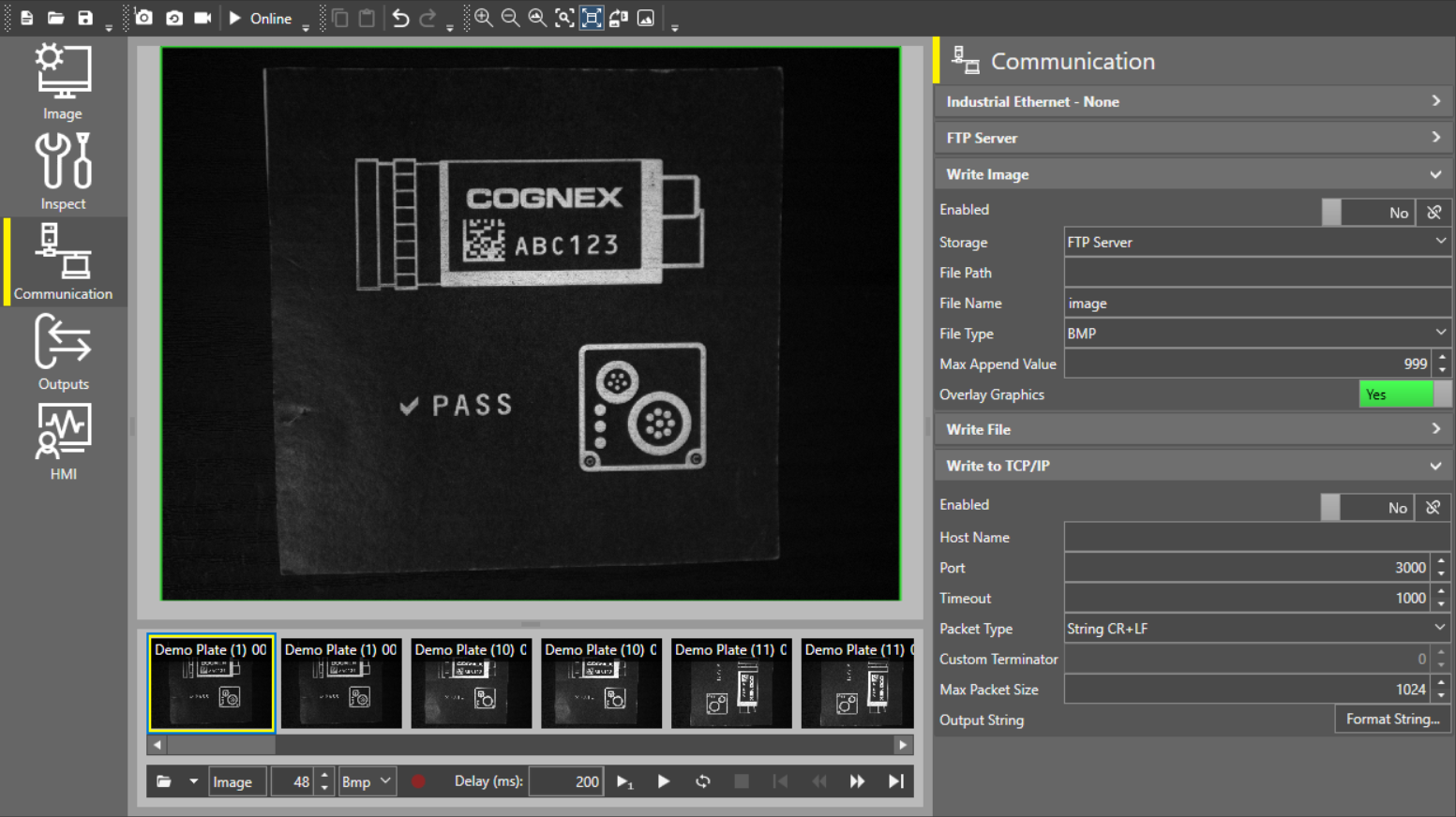 | Overlay Graphics | When you enable Overlay Graphics, the vision system saves the image and a SVG file that includes the graphics. Open the SVG file in your browser to see the image with overlay graphics. |